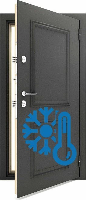 Как работают входные двери с терморазрывом. Известно, что передача тепла идет от теплого к холодному. Представим, что в доме +23, а на улице – 25. Металл дверей – материал с высокой теплопроводностью. Естественно, дверь быстро остывает и промерзает, либо начинает конденсировать.