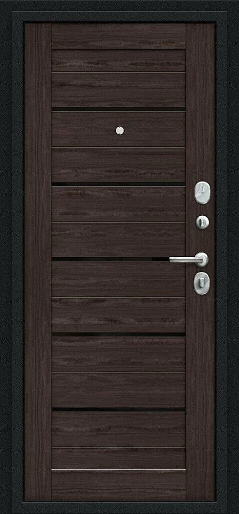 Надежная входная Браво Техно Kale Букле черное/Wenge Veralinga премиум класса по цене 35 665 руб. Большая толщина стали защитит от проникновения в ваш дом, квартиру или коттедж. Используется очень качественная фурнитура: замки, цилиндры, ручки, защелки. Покрытие и отделка двери изготовлено под внимательным контролем производителя. Дверь имеет долгий срок службы и гарантию.